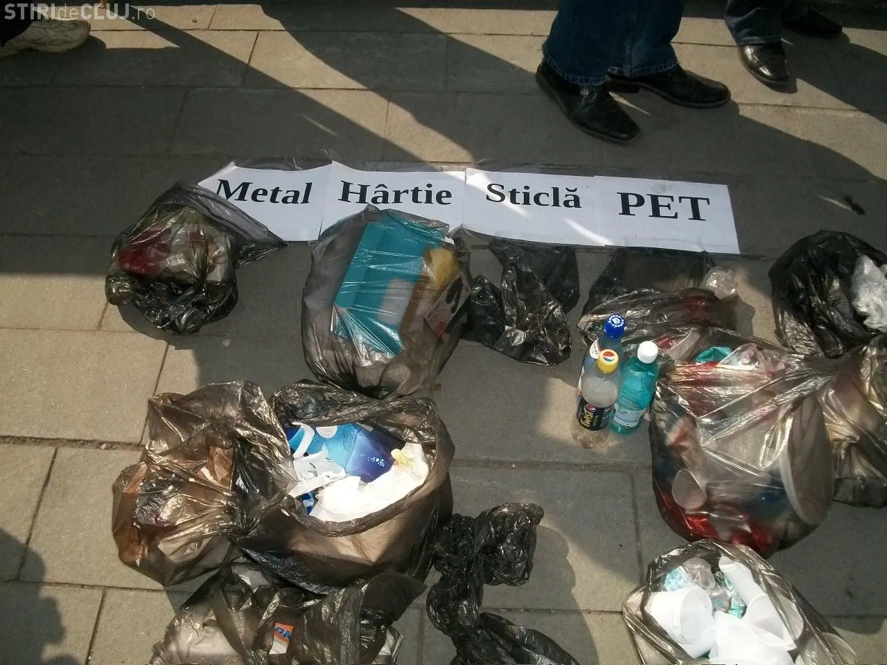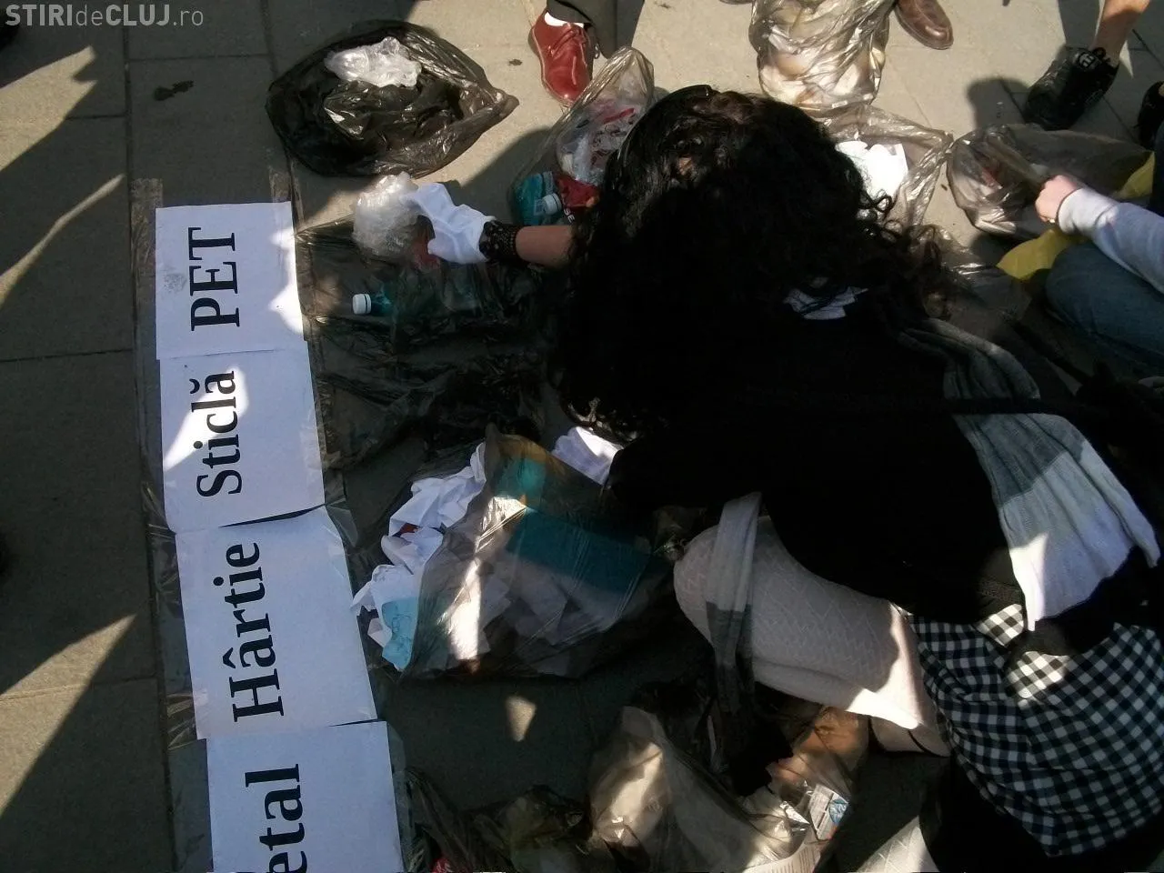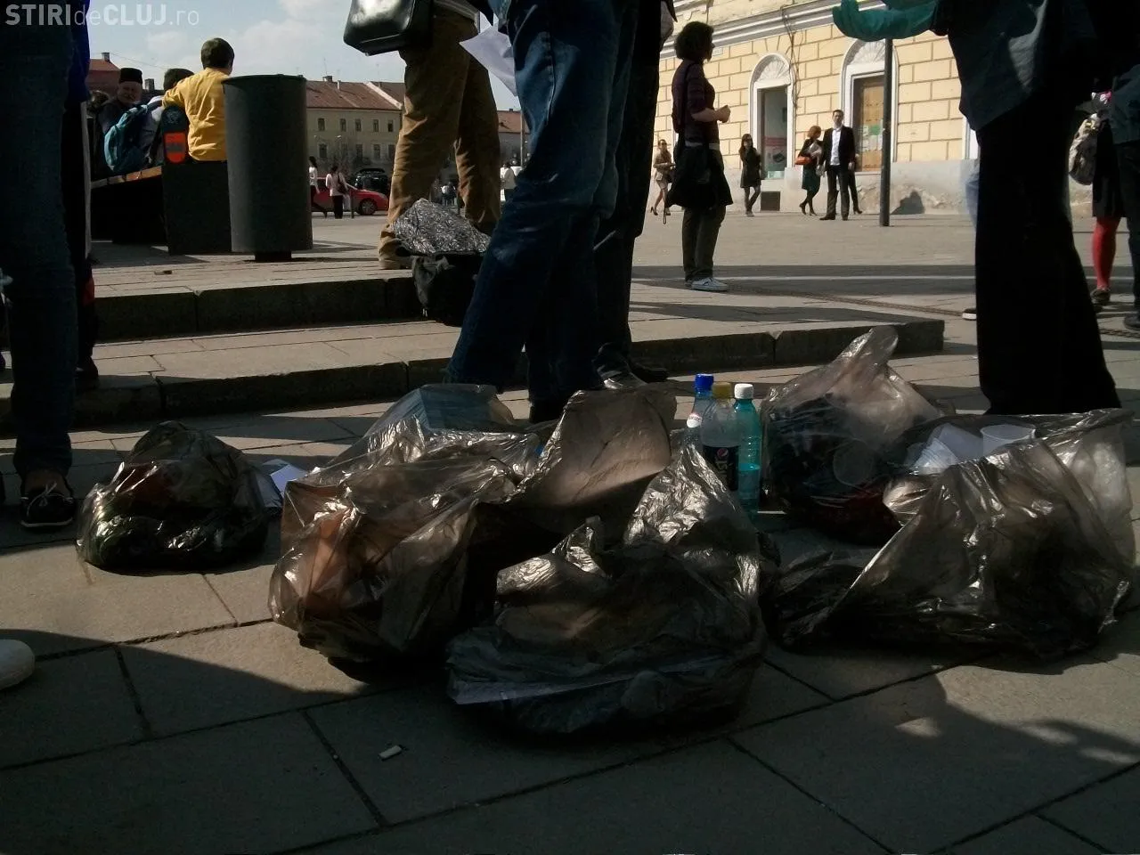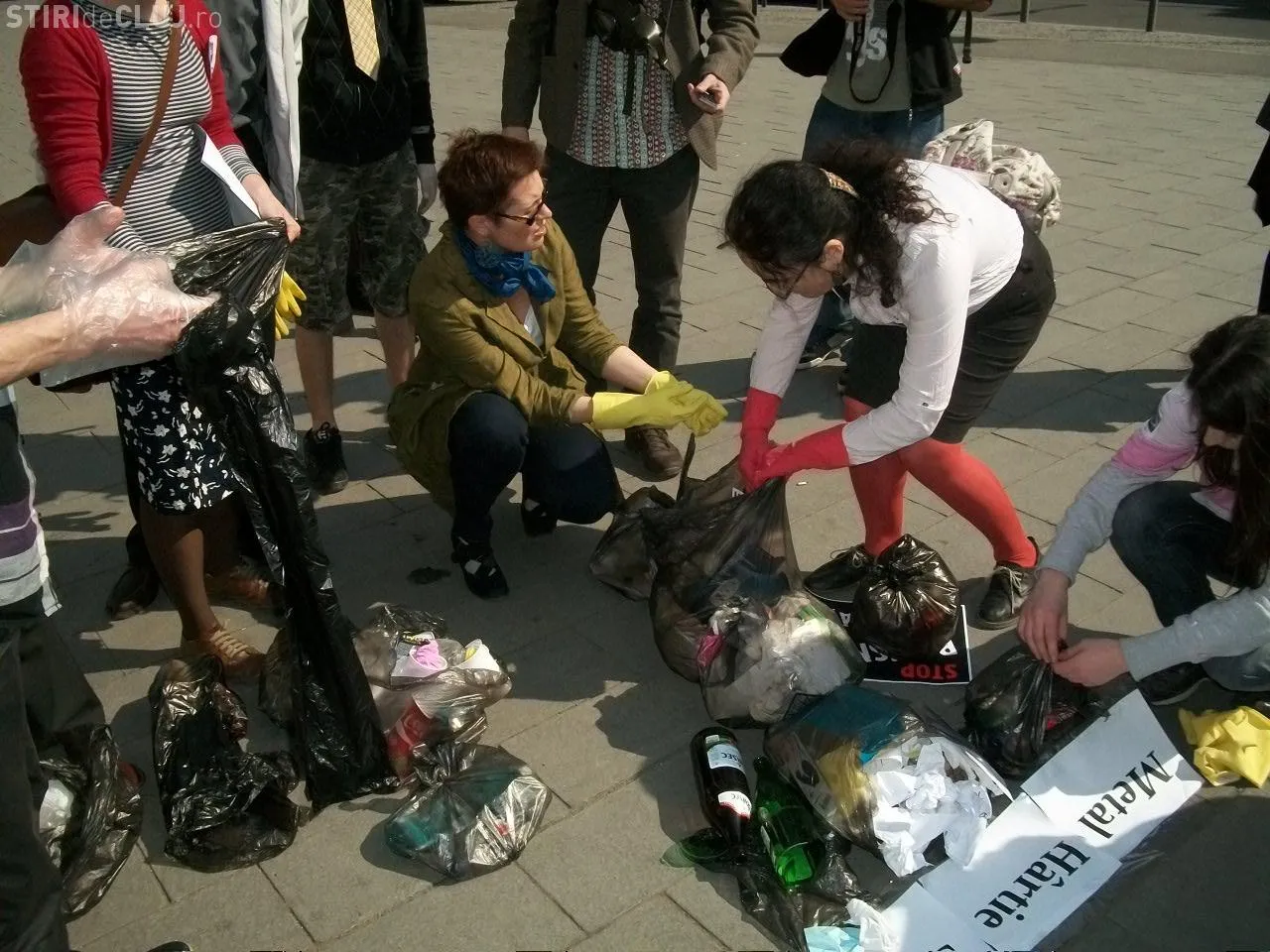 Clujenii, solidari cu cei de la Pata Rat, au scormonit prin gunoaie! Deseurile au fost lasate in fata sediului CJ Cluj FOTO