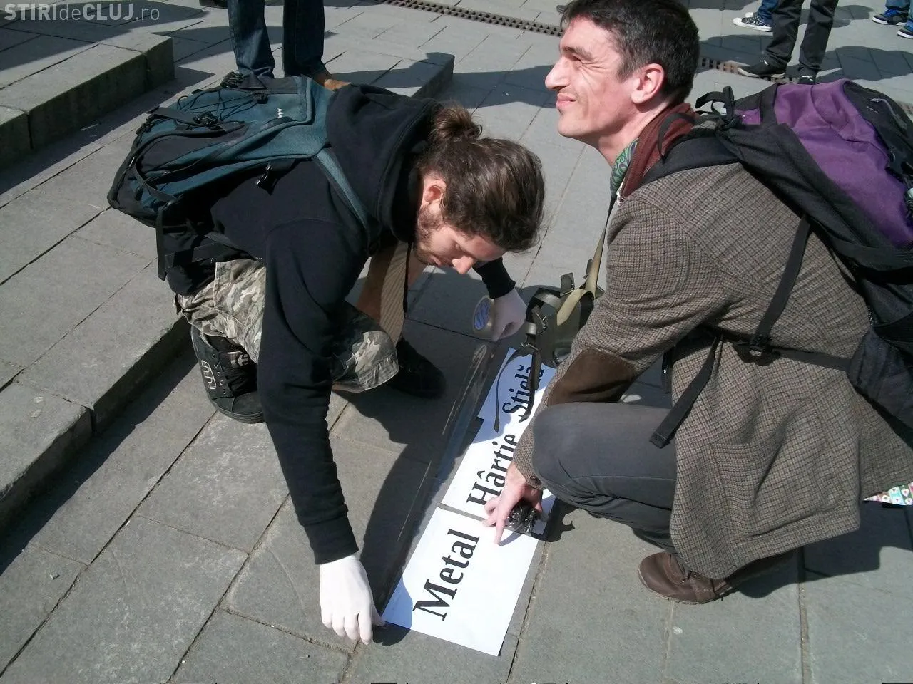 Membrii Grupului de Lucru ai Organizatiilor Civice (gLOC) impreuna cu Tinerii Maniosi si Amnesty International au scormonit prin gunoaie vineri, 23 martie, la Cluj-Napoca pentru a arata ca sunt solidari cu oamenii de la Pata Rat.