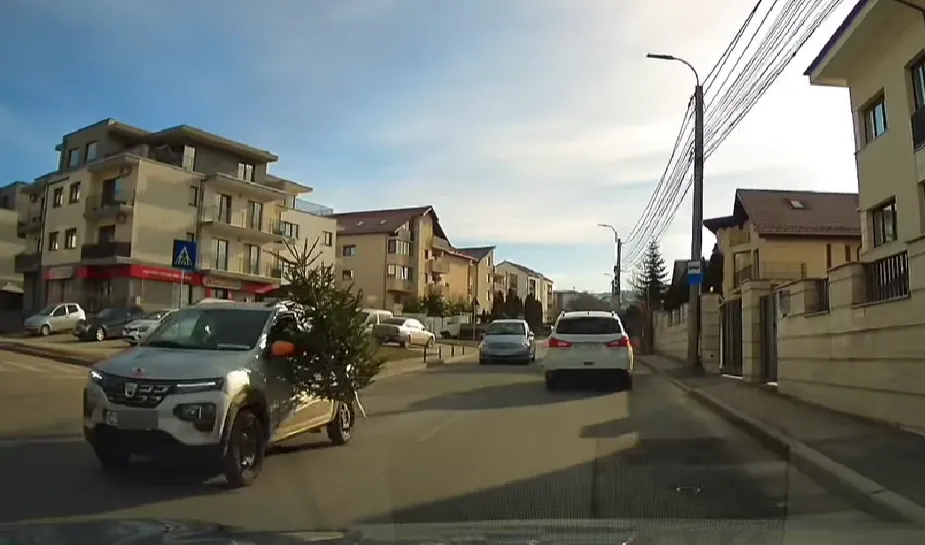 Clujenii sunt descurcăreți! Metoda prin care un șofer a reușit să transporte bradul folosit de Crăciun: ,,Springuț brăduț” - VIDEO