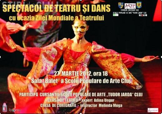 Scoala Populara de Arte "Tudor Jarda" Cluj-Napoca ii invita pe clujeni la "Spectacolul de teatru si dans", ce va avea loc cu ocazia Zilei Mondiale a Teatrului, in 27 martie, pe strada Fabricii de Zahar, nr. 51, in sala "Balet".