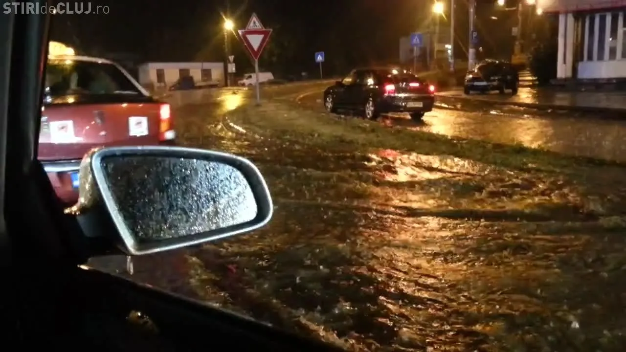 Clujul a fost INUNDAT marți seara! Apa până la genunchi pe Calea Turzii și alte zone - VIDEO