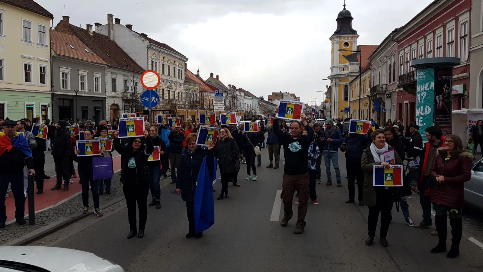 Protestatarii au blocat și traficul de pe bulevardul Eroilor, Chiar în fata sediului PSD.