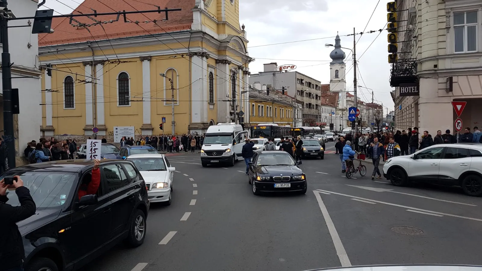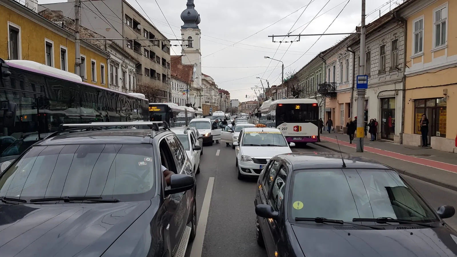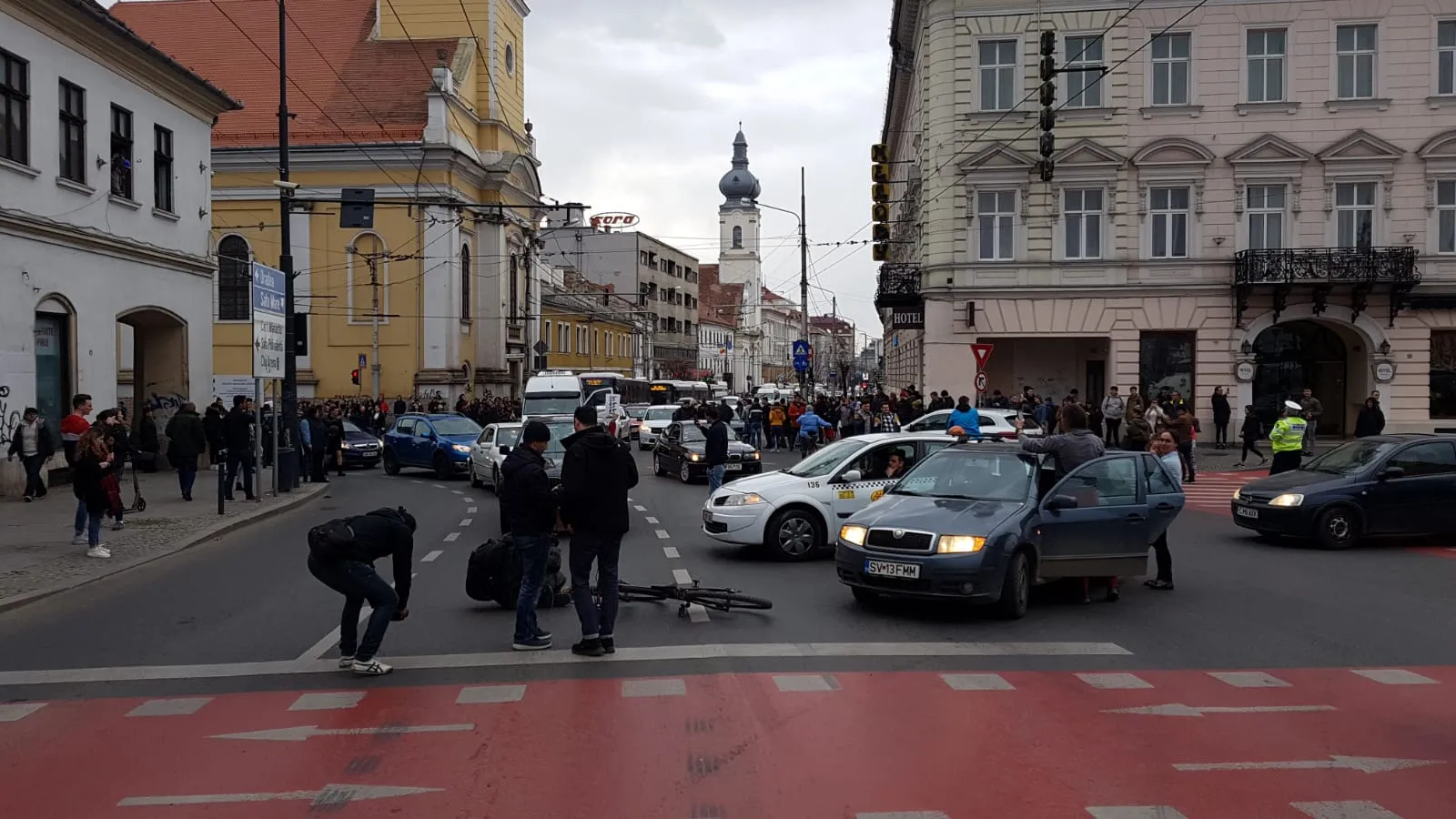 Traficul este paralizat în centrul municipiului Cluj-Napoca, vineri după-amiază, după ce numeroși participanți la trafic s-au oprit în loc, timp de 15 minute.