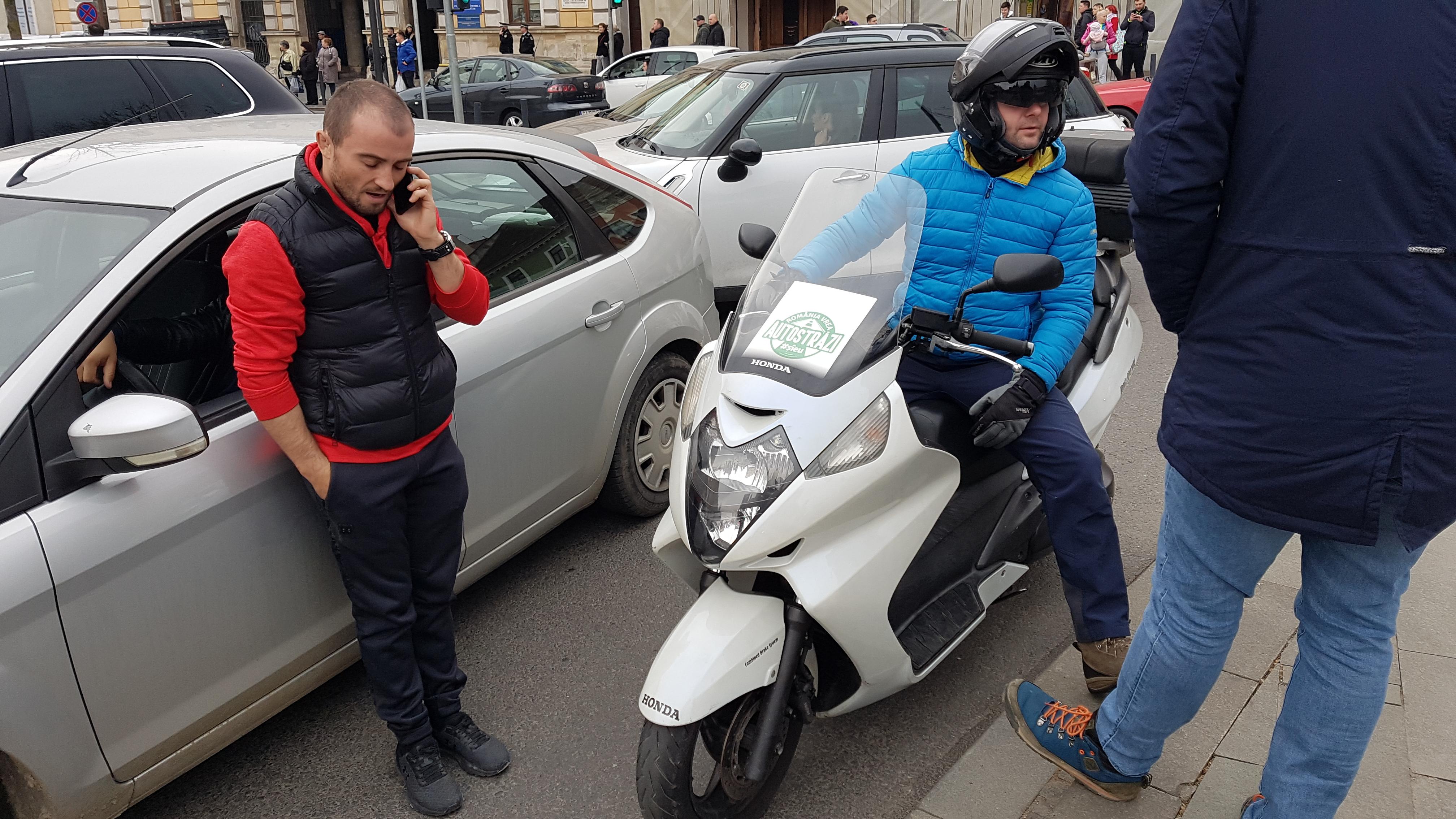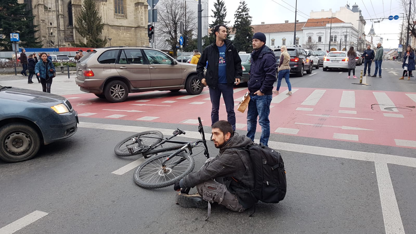 Nu doar șoferii au staționat la ora 15.00, un clujean s-a dat jos de pe bicicletă in mijlocul străzii.