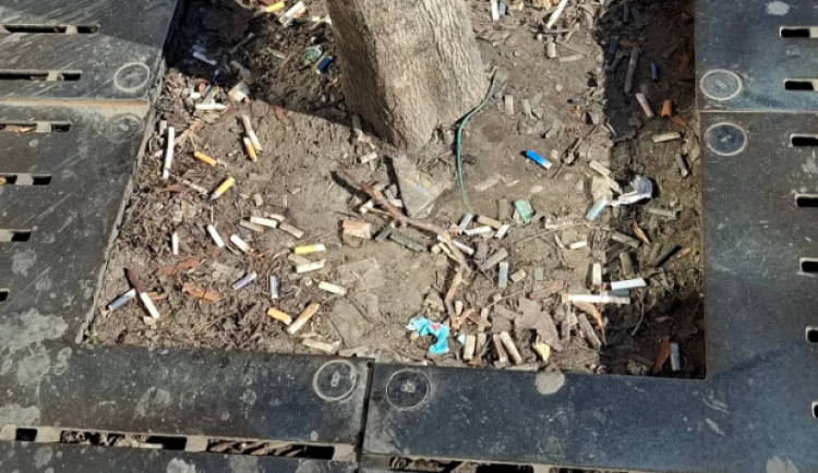Clujul ,,civilizat” lovește din nou! Copacii din Cluj sunt ,,fertilizați” cu mucuri de țigară. Le e lene să meargă până la coș? - FOTO