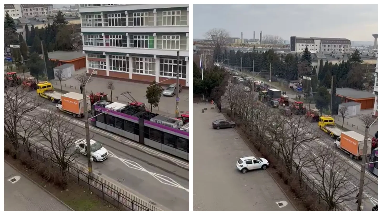 Coloana uriașă de utilaje a venit dinspre Apahida și rapid Bulevardul Muncii s-a blocat.