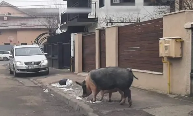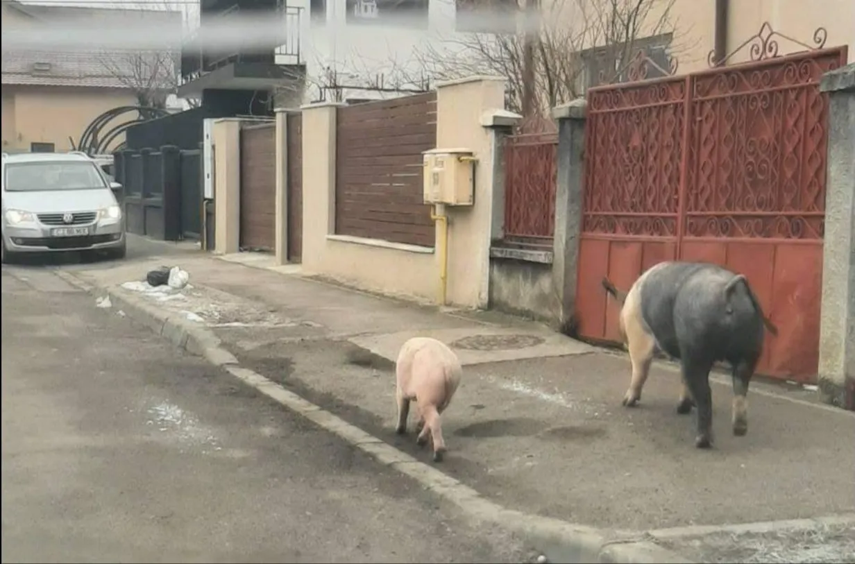 Clujul e oraș pet friendly! Porci liberi pe o stradă din Cluj-Napoca - FOTO