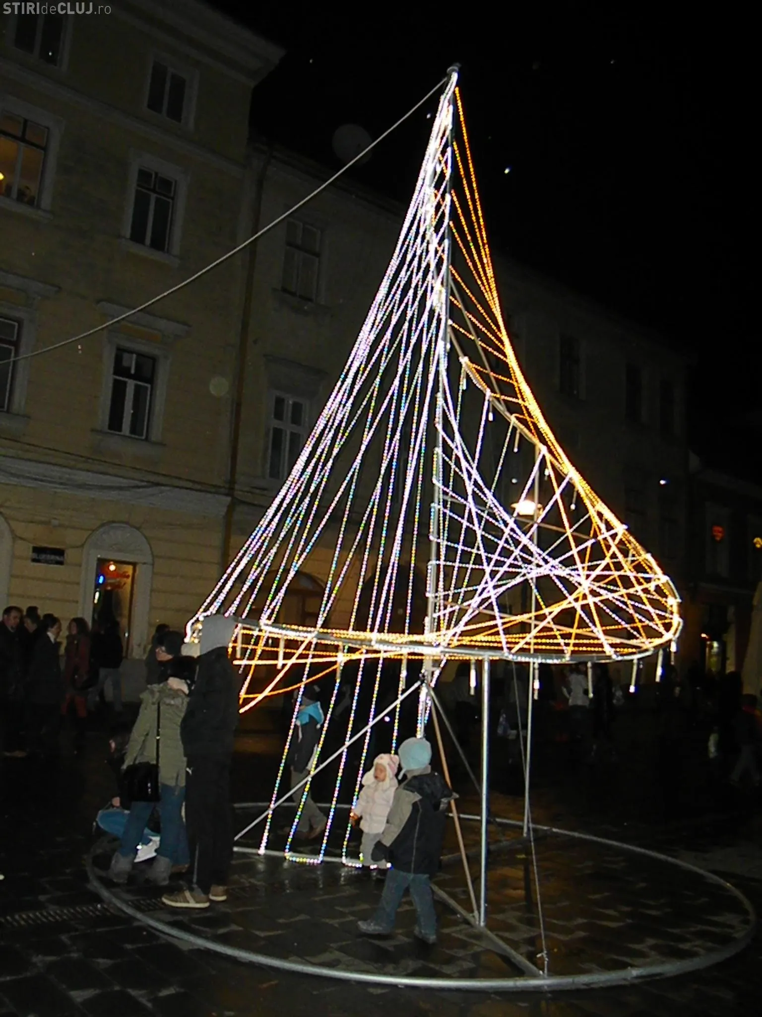 Luminile de sărbători au fost aprinse la Cluj-Napoca de primarul Emil Boc, miercuri seara, la ora 19.00. Edilul a fost ajutat de un grup de copii să apese butonul care a iluminat festiv străzile orașului.