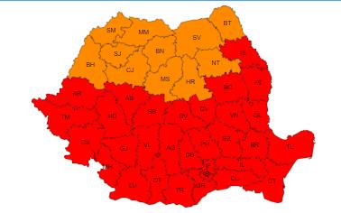 ,,În cea mai mare parte a țării, valul de căldură va continua să se intensifice. Se vor înregistra temperaturi maxime între 37 și 42 de grade, iar pe litoral vor fi de 33...36 de grade. Disconfortul termic va fi deosebit de accentuat, iar indicele temperatură-umezeală (ITU) va depăși pragul critic de 80 de unități.