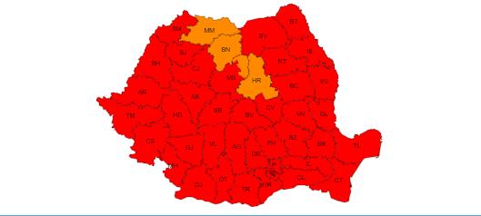 Nu scăpăm nici azi de temperaturile extreme. Momentan, în majoritatea țării este în vigoare un cod roșu de caniculă. Acesta afectează aproape toată România, singurele județe care se ,,bucură” de un cod portocaliu fiind Maramureș, Bistrița-Năsăud și Hargita.