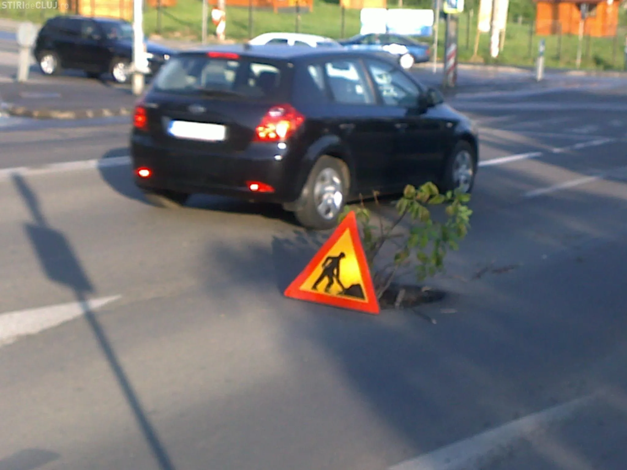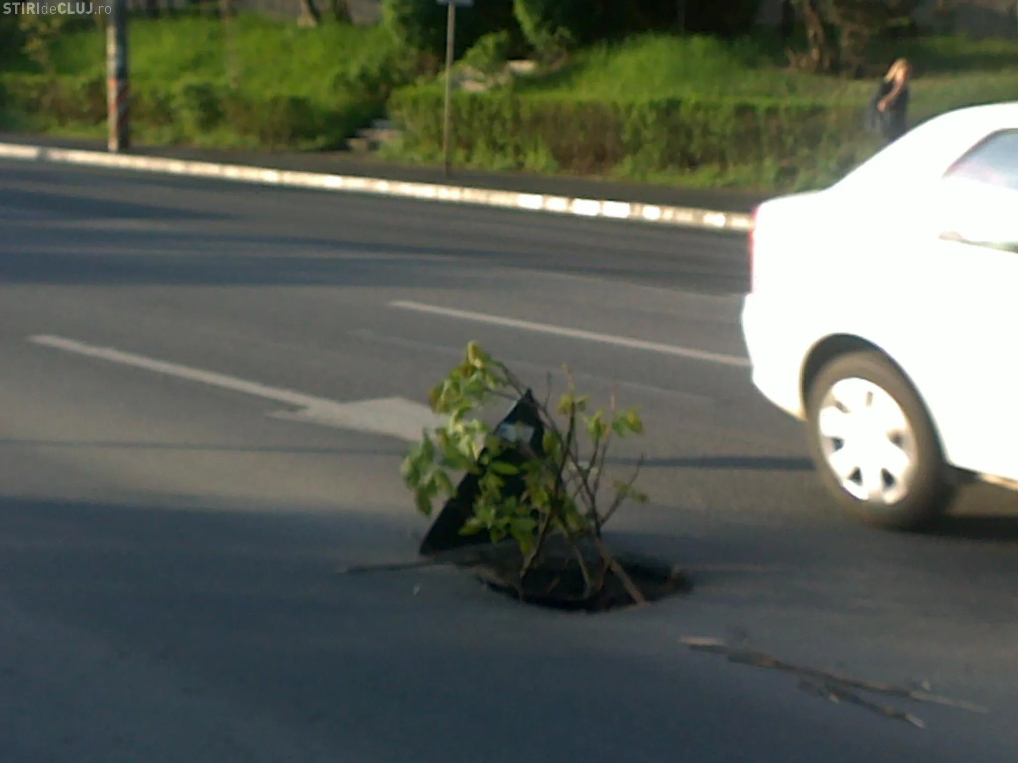 "Au lucrat probabil cei de la apa si au pus un semn cu zona in lucru si o creanga rupta dintr-un copac de pe marginea drumului, dupa care au plecat. Asa ceva este total nepotrivit. Puteau foarte bine sa semnalizeze ca lumea locul. Acesta este Clujul - oras de cinci stele, cu gropi semnalizate cu crengi", ne-a scris Calin, un cititor Stiri de Cluj.