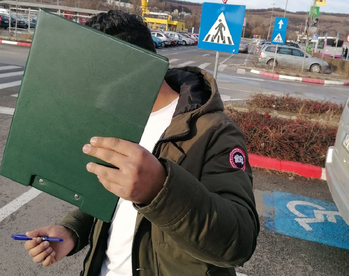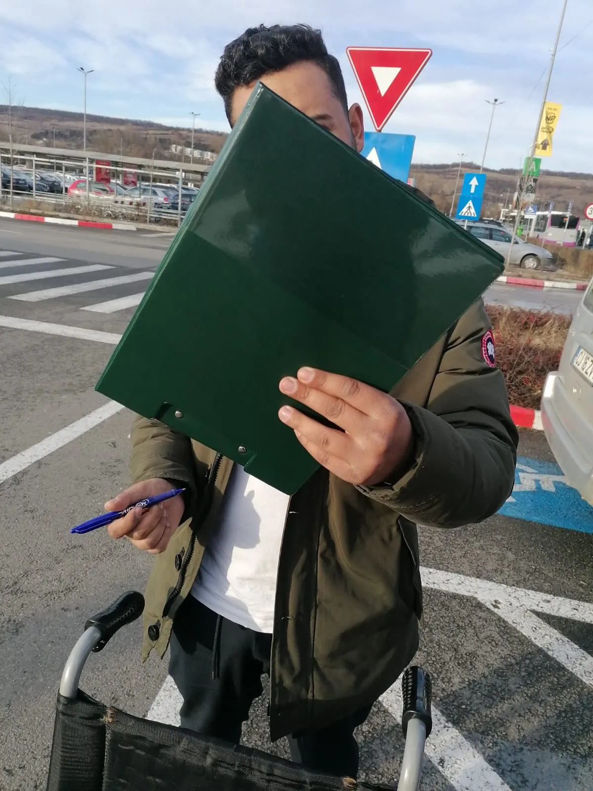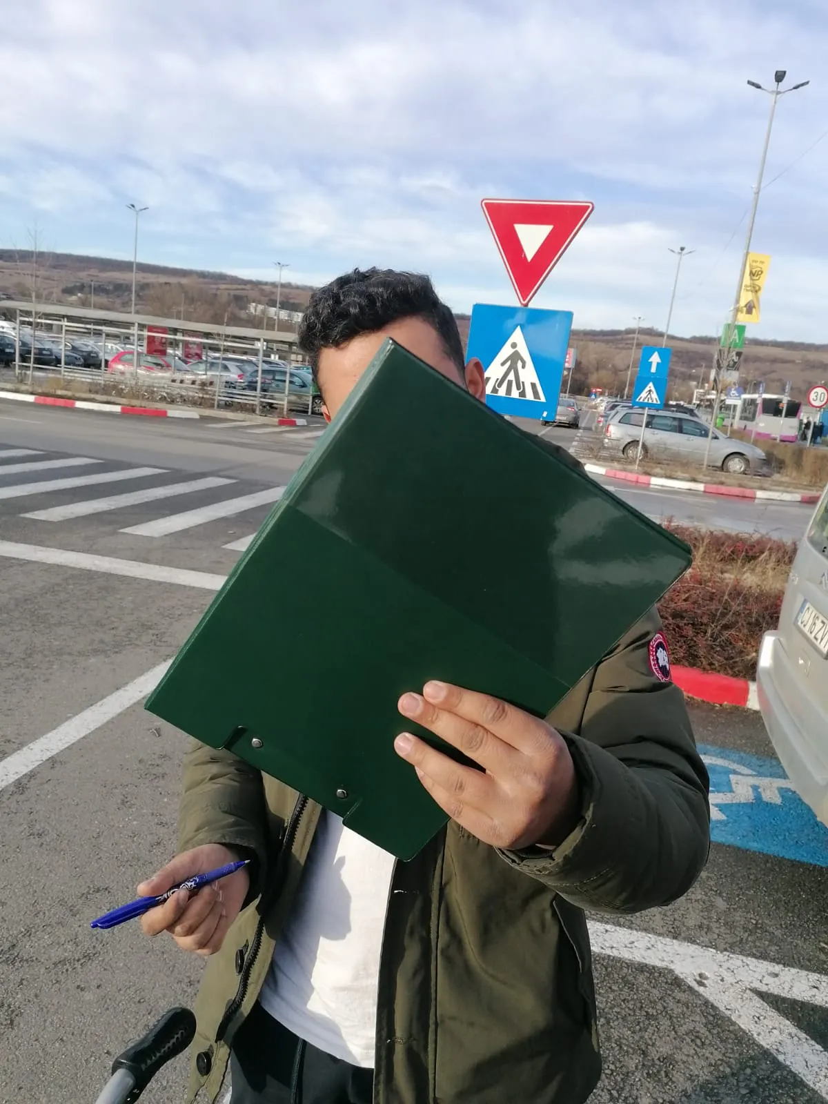 Cel din imagine cere bani cu niște formulare și susține că este cetățean străin, care strânge bani pentru persoane cu dizabilități. ”Cere bani cu niște formulare și se dă cetățean străin care strânge bani pentru persoane cu dizabilități cu tabel frumos cu steagul României și al Uniunii Europene”, a mai spus cititorul.