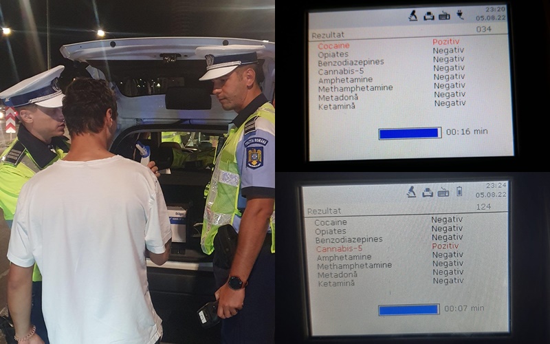 Polițiștii rutieri au depistat în jurul orei 23:20, un conducător auto care se deplasa cu un autoturism, aflându-se sub influența substanțelor interzise. De asemenea, în jurul orei 00:30 a fost depistat un alt conducător auto care se afla sub influența substanțelor psihoactive.
