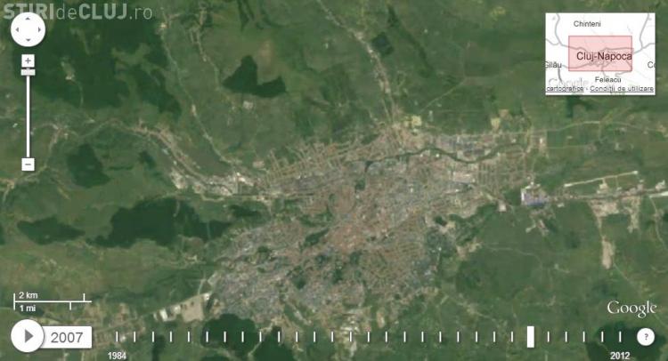 Serviciul Google Earth oferă posibilitatea observării modului în care s-a dezvoltat orașul Cluj-Napoca în ultimii 28 de ani. Imaginile au fost surprinse din satelit.