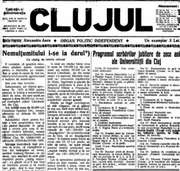 De asemenea, în arhiva digitală a Bibliotecii Central Universitare (BCU) din Cluj se găseşte numărul din octombrie 1930 al ziarului „Clujul“, care reproducea pe prima pagină programul vizitei regale din 1930.