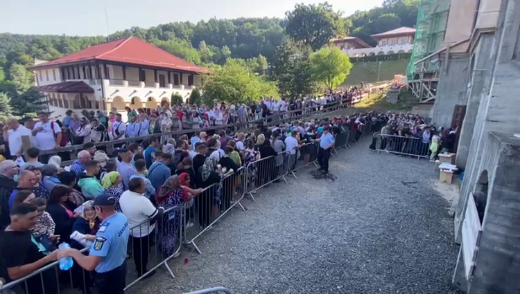 Mii de oameni stau la coadă dumnică dimineața pentru a săruta și pentru a se închina Icoanei făcătoare de minuni de la Mănăstirea Nicula.