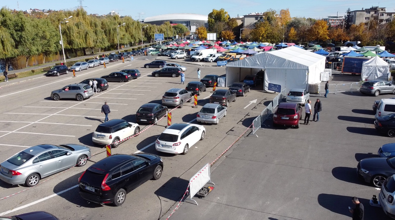 Accesul se poate face numai cu mașina, iar sâmbătă, 23 octombrie, erau zeci de mașini la coadă până afară din parcare. Zilnic la centru drive- though se imunizează circa 400 - 500 de persoane, iar de la deschidere au fost vaccinate 49.822 de persoane.