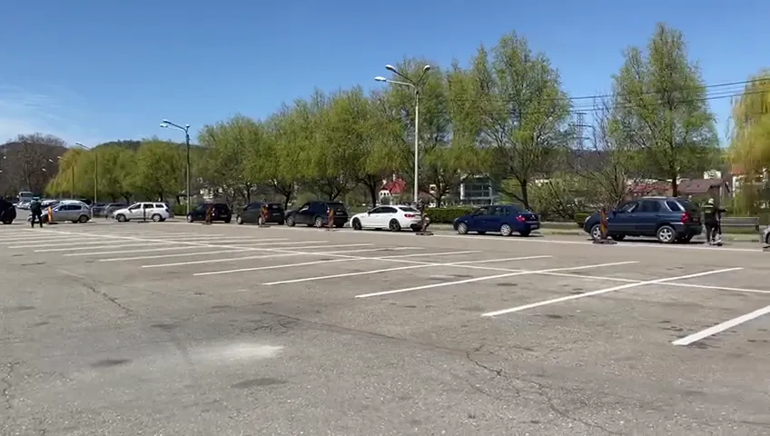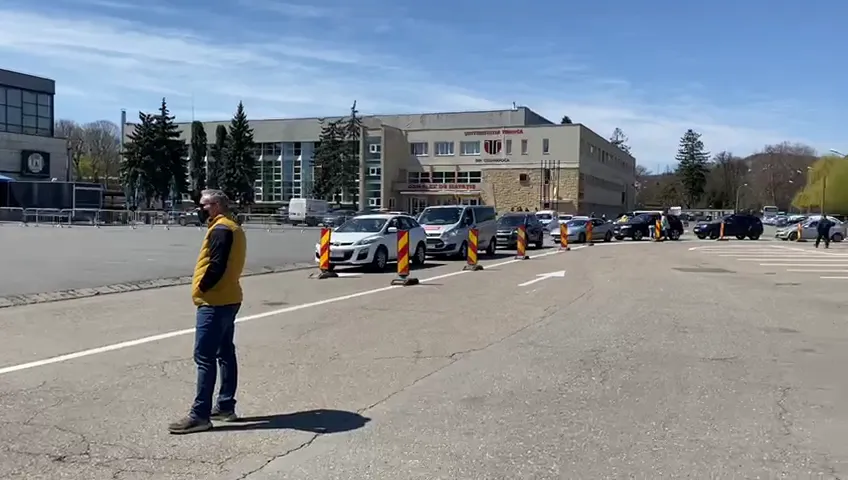 Încă de la ora 13.00 a fost coadă de mașină pe platoul Sălii Sporturilor ”Horia Demian” Cluj.