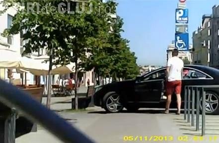 Cocalar cu Mercedes parcat pe pista de biciclete de pe Eroilor, pentru a fi aproape de o terasă - VIDEO