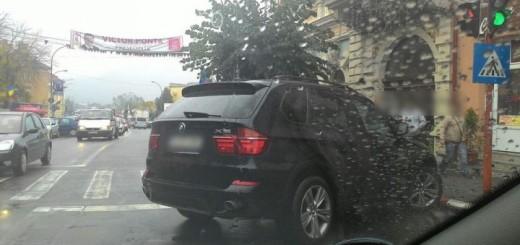 Un cocalar cu mașină de lux a parcat pe strada 22 Decembrie 1989 din Dej, blocând jumătate de drum.