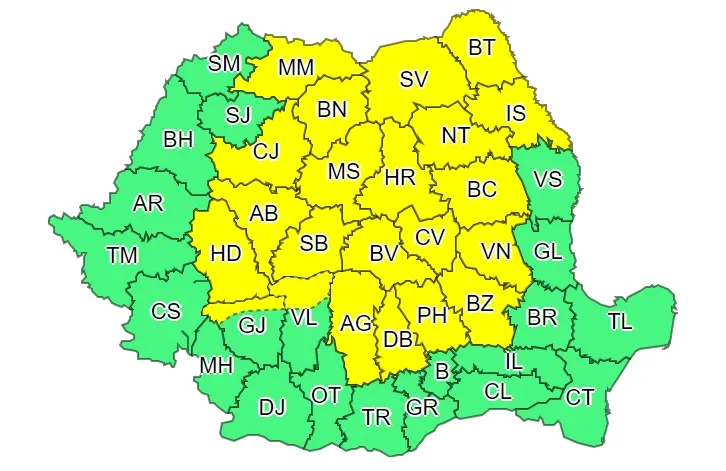 Cod galben de frig și ploi la Cluj și alte 21 de județe. Vezi ce anunță meteorologii