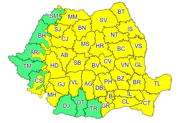 Avertismentul este valabil în perioada 24 iunie, ora 02:00 – 25 iunie, ora 10:00.