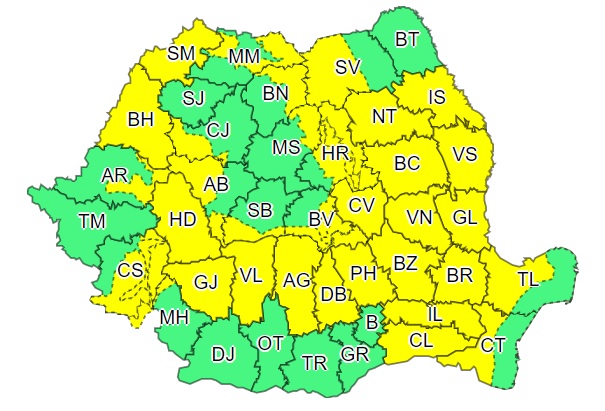COD GALBEN de furtuni în mai multe județe din țară. Clujul e afectat