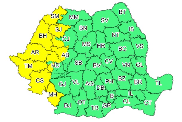 Meteorologii de la ANM au emis un avertisment de tip cod galben de instabilitate atmosferică pentru mai multe județe din țară. O parte a județului Cluj este afectată.