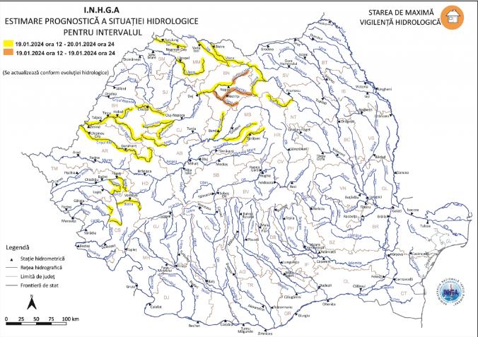 Potrivit hidrologilor Avertizarea tip Cod Galben de inundații este valabilă în perioada: 19.01.2024 ora 12:00 – 20.01.2024 ora 09:00.