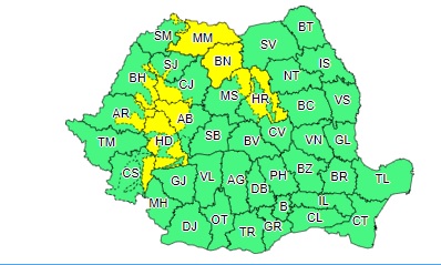 Meteorologii de la ANM au emis un avertisment de tip cod galben de ninsori puternice pentru mai multe județe din țară, printre care și Clujul.