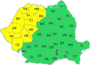 In Banat, Crisana, Maramures, vestul si nordul Transilvaniei, precum si la munte vantul va prezenta intensificari, la rafale depasind 50 - 60 km/h, si va viscoli ninsoarea.