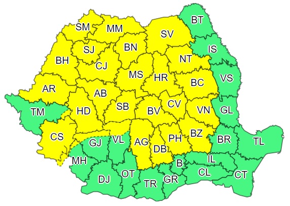 Meteorologii de la ANM au emis un nou avertisment de tip cod galben de vreme rea, care afectează o mare parte a județelor din țară, printre care și Clujul.