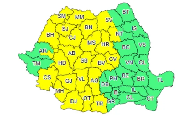 Meteorologii de la ANM au emis un avertisment de tip cod galben care afectează aproape jumătate din țară.
