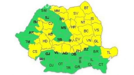 Atentionarea intra in vigoare marti, de la ora 12.00, si este valabila pana miercuri, 23 iunie, ora 21.00. Potrivit meteorologilor, in zonele de deal si de munte vor fi ploi abundente, iar cantitatile de apa vor depasi 25-30 de litri pe metrul patrat si pe arii restranse chiar si 50 de litri pe metrul patrat. Vor fi conditii de grindina si intensificari de scurta durata ale vantului in timpul ploilor.