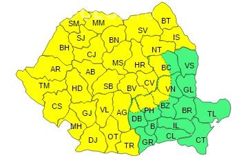 Meteorologii de la ANM au emis un avertisment de tip cod galben de depuneri de polei, precipitaţii mixte moderate cantitativ, intensificări ale vântului și ninsori viscolite la munte, valabil pentru aproape toată țara.
