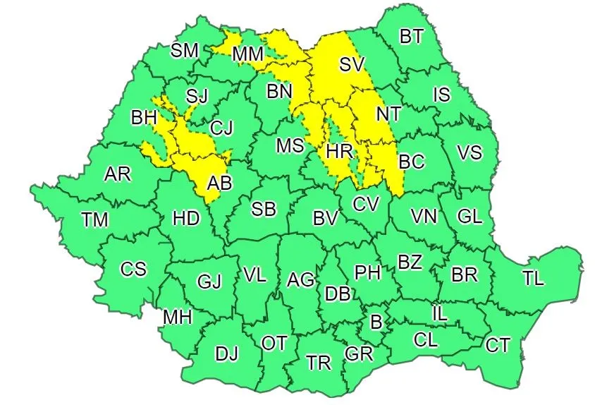 Fenomene vizate sunt intensificări ale vântului, precipitații predominant sub formă de ploaie moderate cantitativ