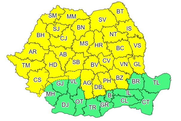 Meteorologii de la ANM au emis un nou avertisment de tip cod galben instabilitate atmosferică, care afectează aproape toată țara.