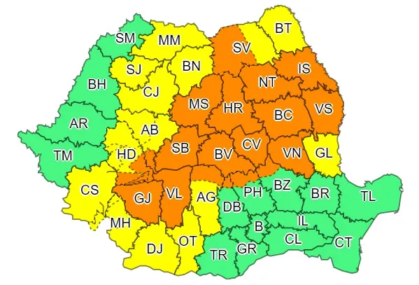 Cod galben și potrocaliu în aproape toată țara! Clujul este afectat