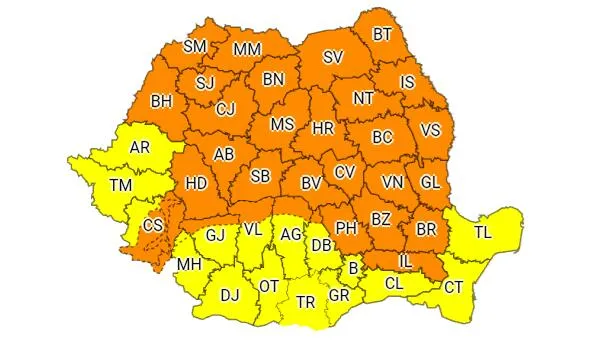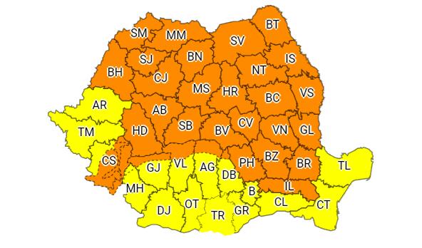 Atentionare COD PORTOCALIU, de averse torentiale, grindina, intensificari ale vantului, vijelii in intervalul 13.06.2020 ora 15:00-14.06.2020 ora 02:00.
