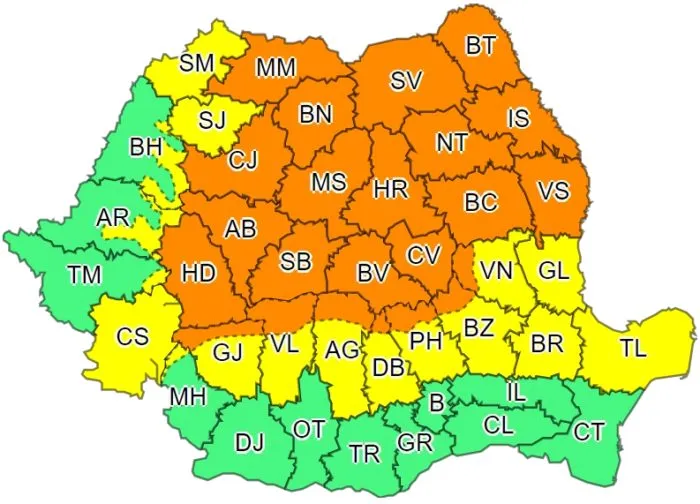 potrivit meteorologilor ANM, un Cod portocaliu va fi valabil în perioada marți, ora 10:00 - miercuri, ora 03:00. În cea mai mare parte a Moldovei, Transilvaniei, Maramureșului și a zonei montane vor fi averse torențiale, descărcări electrice, vijelii și grindină. În intervale scurte de timp sau prin acumulare se vor înregistra cantități de apă de 35-50 l/mp și izolat 60-80 l/mp.
