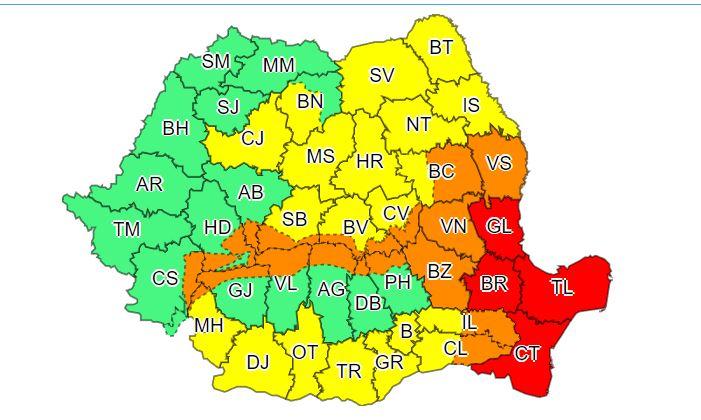 De asemenea, în paralel a fost instituit un cod portocaliu de vremea rea, în intervalul 26 noiembrie, ora 10:00 – 26 noiembrie, ora 20:00.