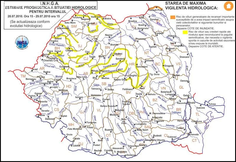 Potrivit hidrologilor, pe aceste cursuri sunt posibile cresteri de debite si niveluri cu depasiri ale cotelor de atentie si inundatie, cu scurgeri importante pe versanti, torenti, paraie cu efect de inundatii locale.