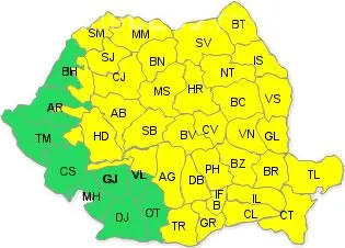 Atentionarea emisa de Administratia Nationala de Meteorologie vizeaza aproape intreaga tara si este valabila pana sambata seara, la ora 21.00.
