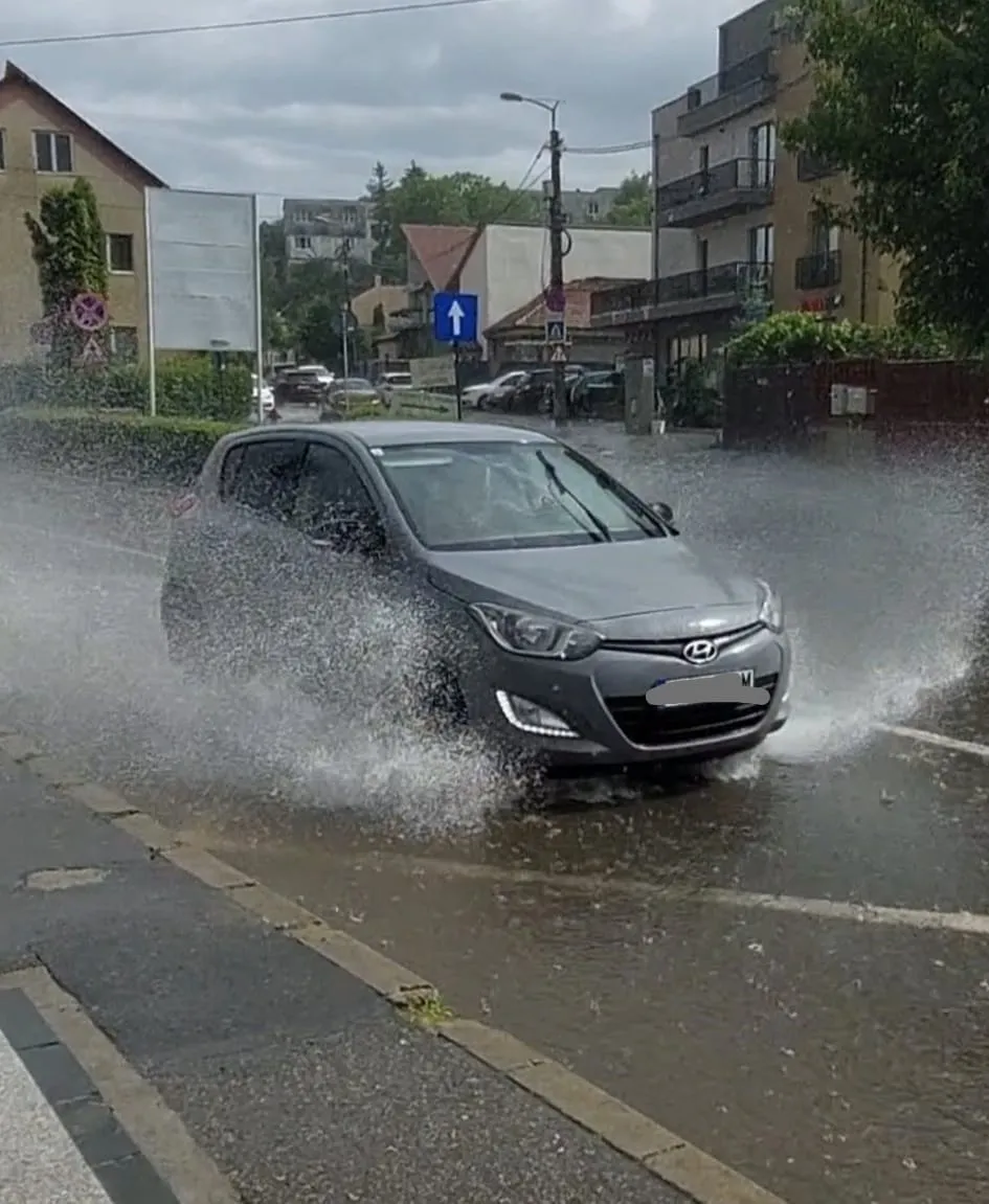 Comportament „civilizat” al unor șoferi, în trafic, pe ploaia de la Cluj: „Merci de duș. Data viitoare trimit video la poliție” FOTO