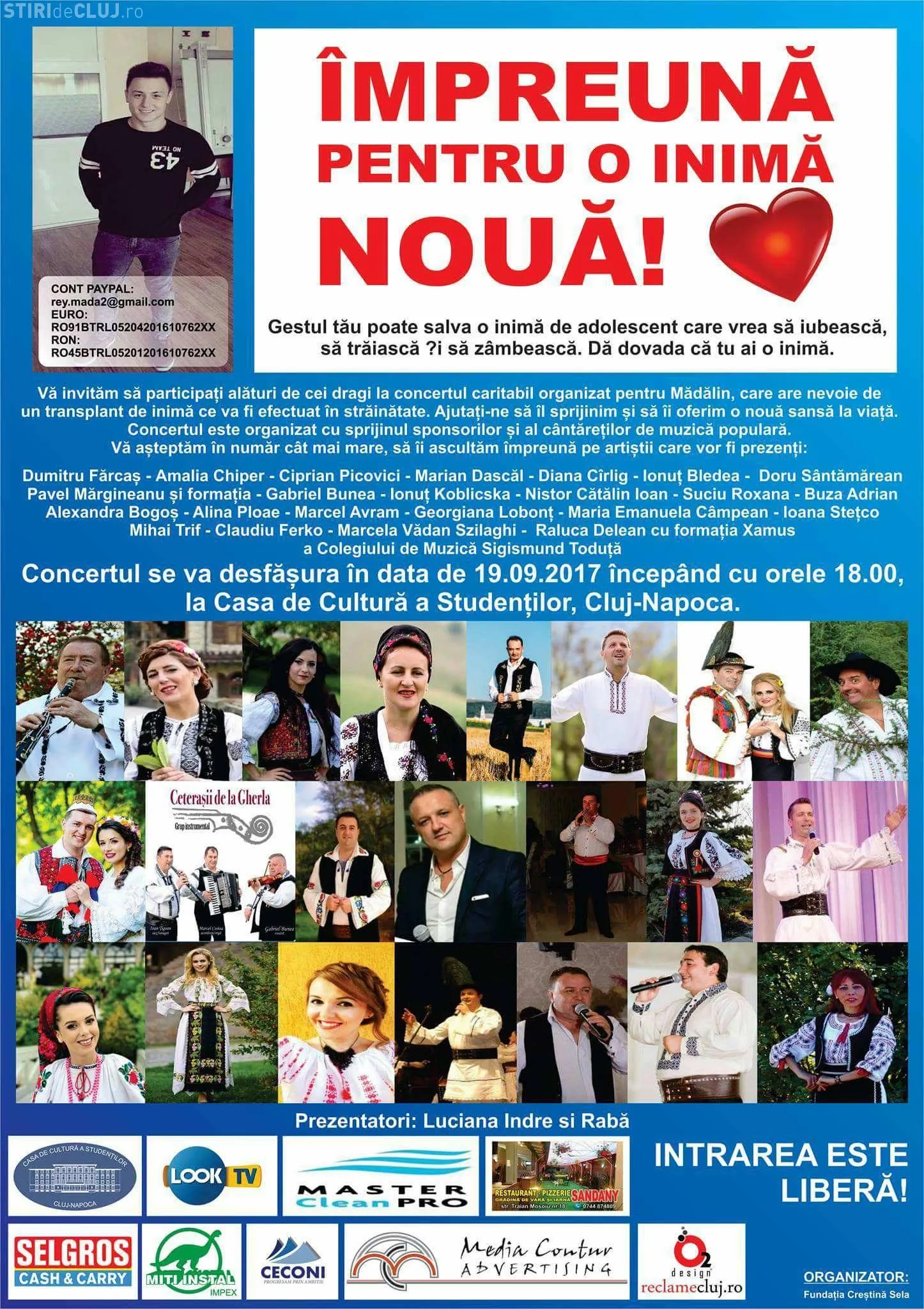 Concert caritabil la Cluj pentru un tânăr care are nevoie urgentă de un transplant de inimă