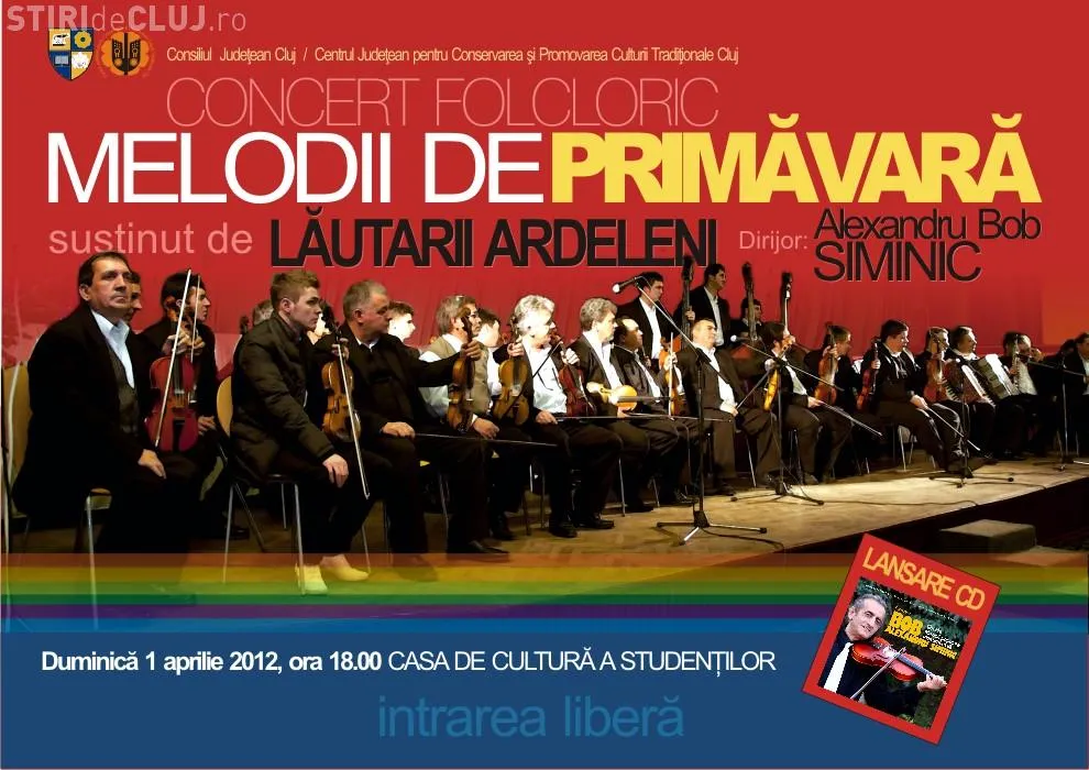 Clujenii sunt asteptati la un concert folcloric ce va avea loc duminica, 1 aprilie 2012, ora 18.00, la Casa de Cultura a Studentilor.