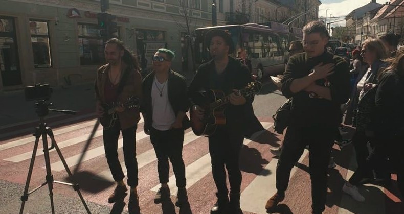 Prin traficul zilnic al Clujului și-a făcut loc și un pic de magie. O trupă și-a scos instrumentele și a organizat un concert ad-hoc, chiar pe o trecere de pietoni din centrul orașului. Ca să nu încurce circulația tinerii artiști au sincronizat spectacolul muzical cu culoarea roșie a semaforului.