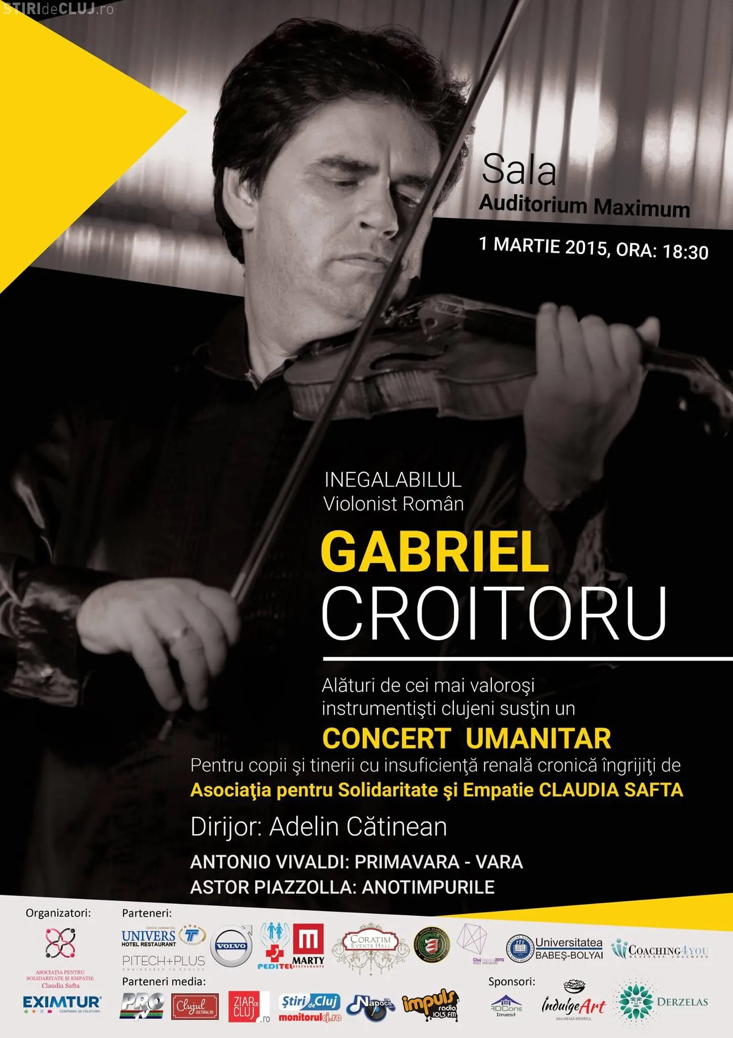 În data de 1 Martie 2015, începând cu ora 18.30, în Sala Auditorium Maximum a Casei Universitarilor de pe strada Kogălniceanu din Cluj-Napoca va avea loc un concert extraordinar susținut de marele violinist Gabriel Croitoru.