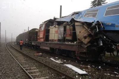 In urma impactului, primul vagon al trenului de persoane a deraiat, iar din marfar au fost avariate ultimele vagoane.