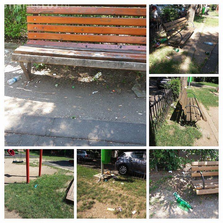 Din imaginile trimise se poate vedea că mizeria din parc este de nedescris. Pe lângă mizeria din jurul coșurilor, sunt gunoaie și lângă bănci, semn că gradul de civilizație al unor cetățeni este foarte redus.